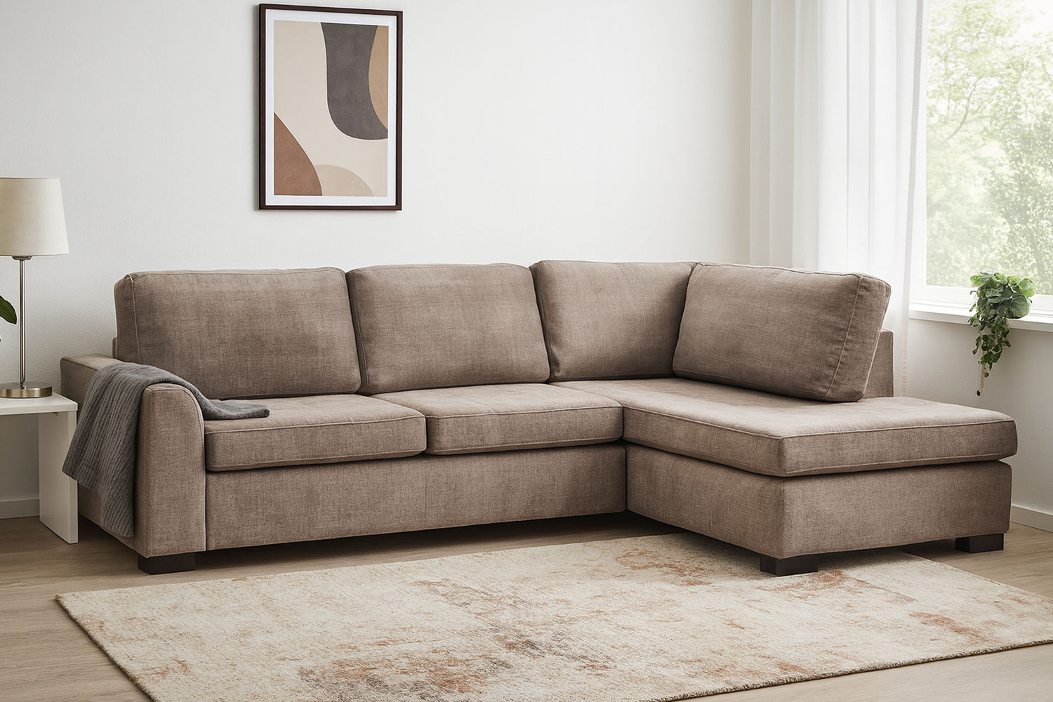 The Grafton chaise sofa combines modern comfort with timeless style, making it the perfect centrepiece for any living space. Designed with generous seating, it features deep cushions and a spacious chaise section, ideal for stretching out and relaxing.