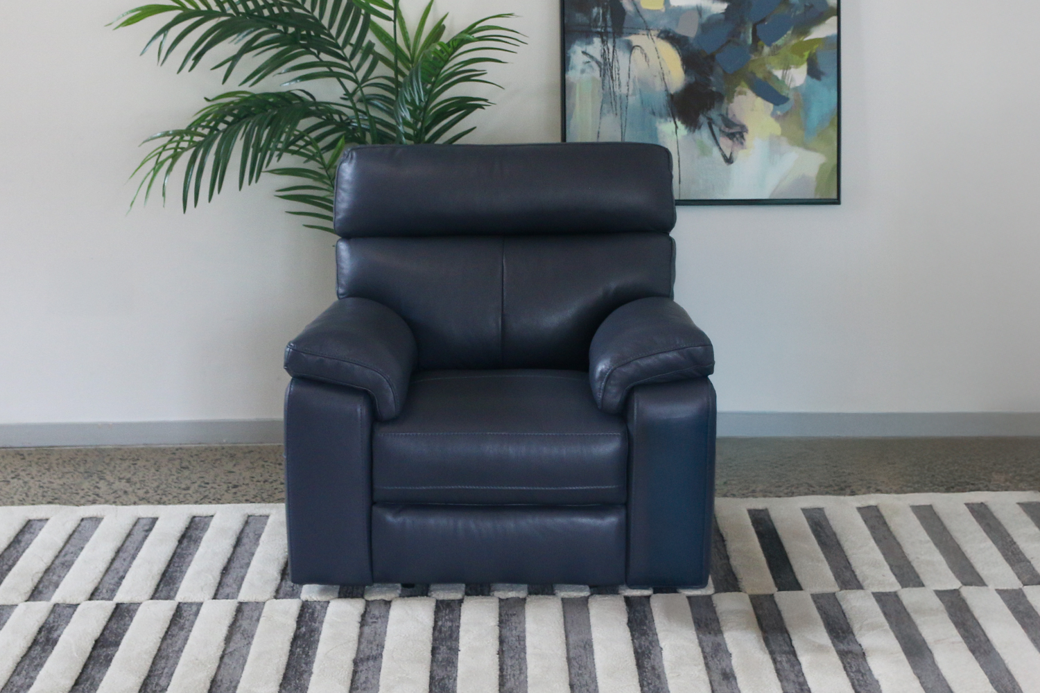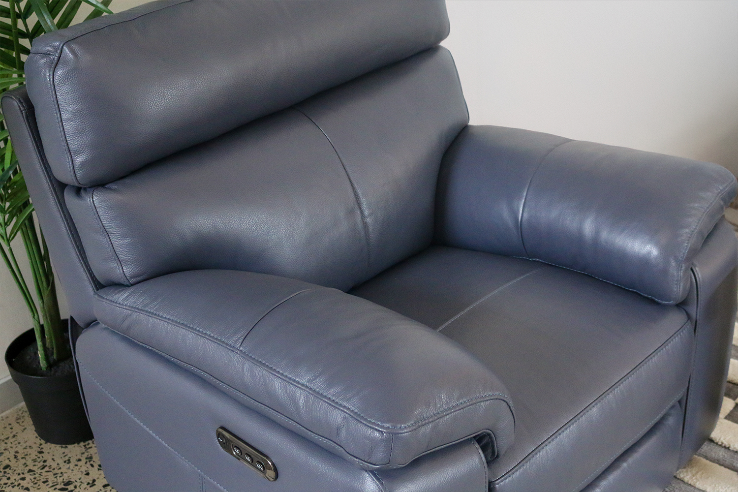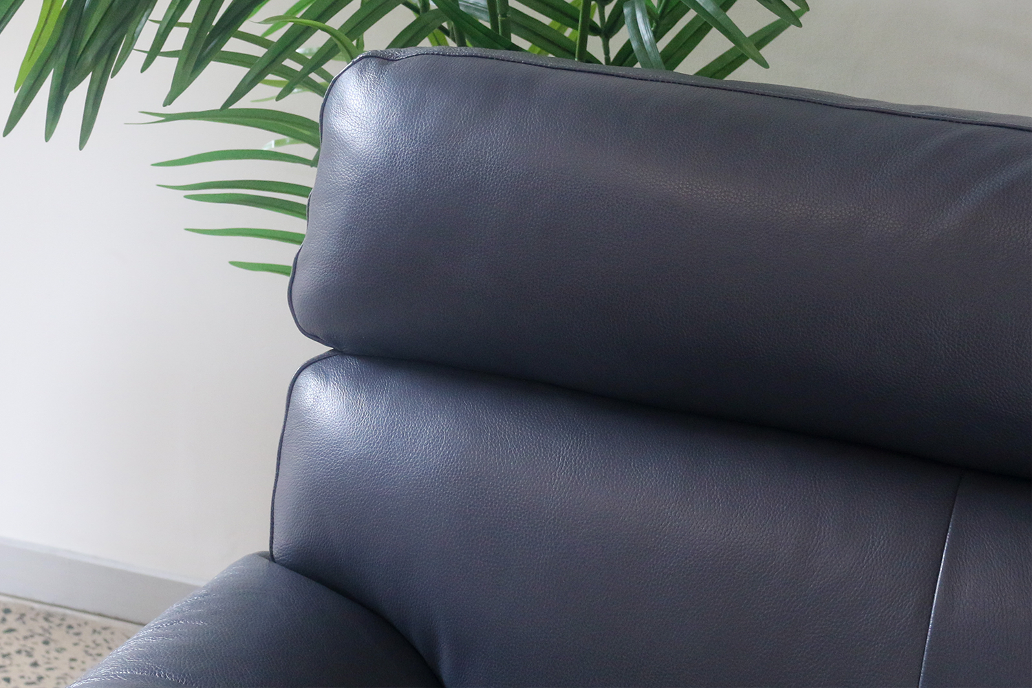 Our Palermo electric reclining collection is crafted from genuine leather, offering a luxurious feel and a sophisticated aesthetic. Its deep navy blue hue adds a bold yet refined touch to any living space, while the high backrest and plush cushioning provide exceptional comfort and support. The seating is generously padded with premium inserts, ensuring a cosy experience for extended lounging or reading sessions. With an electric reclining mechanism, users can effortlessly adjust their position at the touch of a button, making it easy to find the perfect angle for relaxation. The supple leather finish is not only visually striking but also easy to clean and maintain, ideal for everyday use. Sleek armrests and fine stitching further enhance its modern appeal, combining style with durability. Whether for a quiet night in or everyday comfort, the Palermo range delivers both functionality and luxury in a timeless design.
