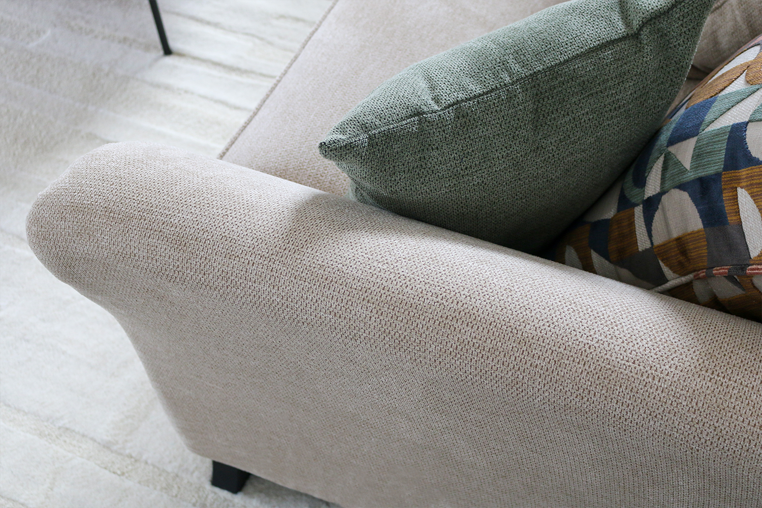 Prolonging the life of your fabric sofa requires very little time and effort to keep it looking and feeling it’s best every day! If your cushions are filled with fibre, plump and turn them daily. For foam-filled loose cushions, rotate them regularly to promote even wear. A weekly vacuuming routine with the brush end of the hoover helps eliminate dust and maintain cleanliness in all those nooks where crumbs love to hide. Professional cleaning is advised to uphold the quality of your fabric. As with any well-loved sofa, interiors will naturally soften with regular use and make sure you use of all seats regularly. Finally, dressing your fabric sofa or chair not only enhances its look, but also helps prolong the life of your beloved spot!