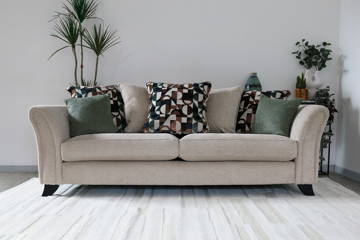 The Sofia collection blends timeless elegance with modern comfort, offering a statement piece for any living space. Available in both scatter back and standard back options, the Sofia allows you to choose the perfect balance of relaxed lounging or structured support. Crafted with sweeping flared arms and tapered legs, each sofa exudes sophistication while ensuring long-lasting quality. Choose from a variety of sizes to suit your home, from cosy 2 seaters to generously sized family sofas.