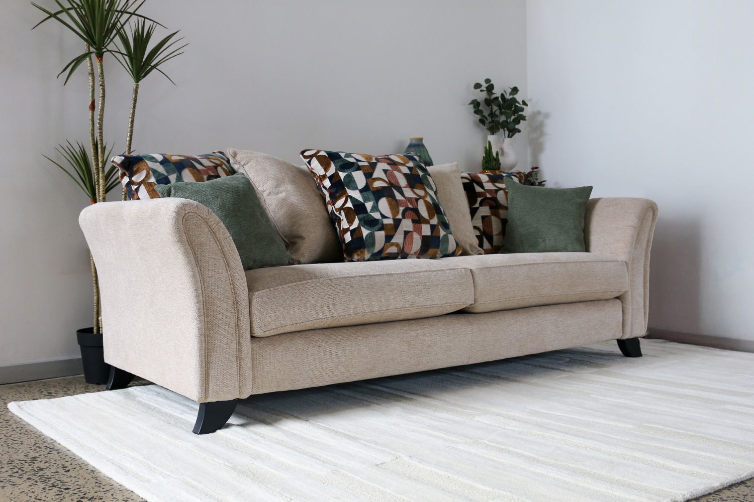 Plumping fibre filled cushions.