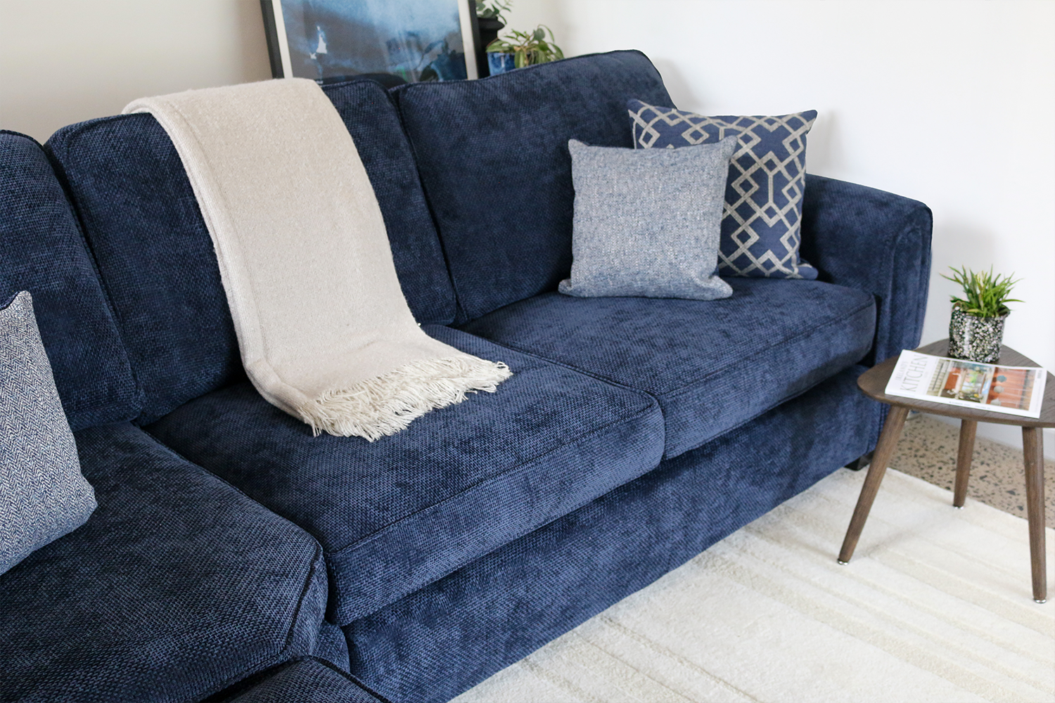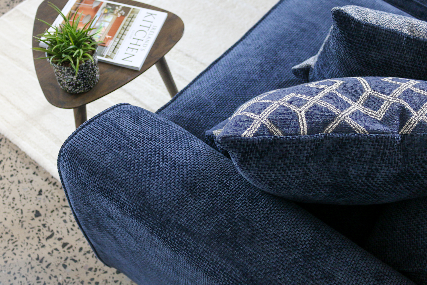 Prolonging the life of your fabric sofa requires very little time and effort to keep it looking and feeling it’s best every day! If your cushions are filled with fibre, plump and turn them daily. For foam-filled loose cushions, rotate them regularly to promote even wear. A weekly vacuuming routine with the brush end of the hoover helps eliminate dust and maintain cleanliness in all those nooks where crumbs love to hide. Professional cleaning is advised to uphold the quality of your fabric. As with any well-loved sofa, interiors will naturally soften with regular use and make sure you use of all seats regularly. Finally, dressing your fabric sofa or chair not only enhances its look, but also helps prolong the life of your beloved spot!